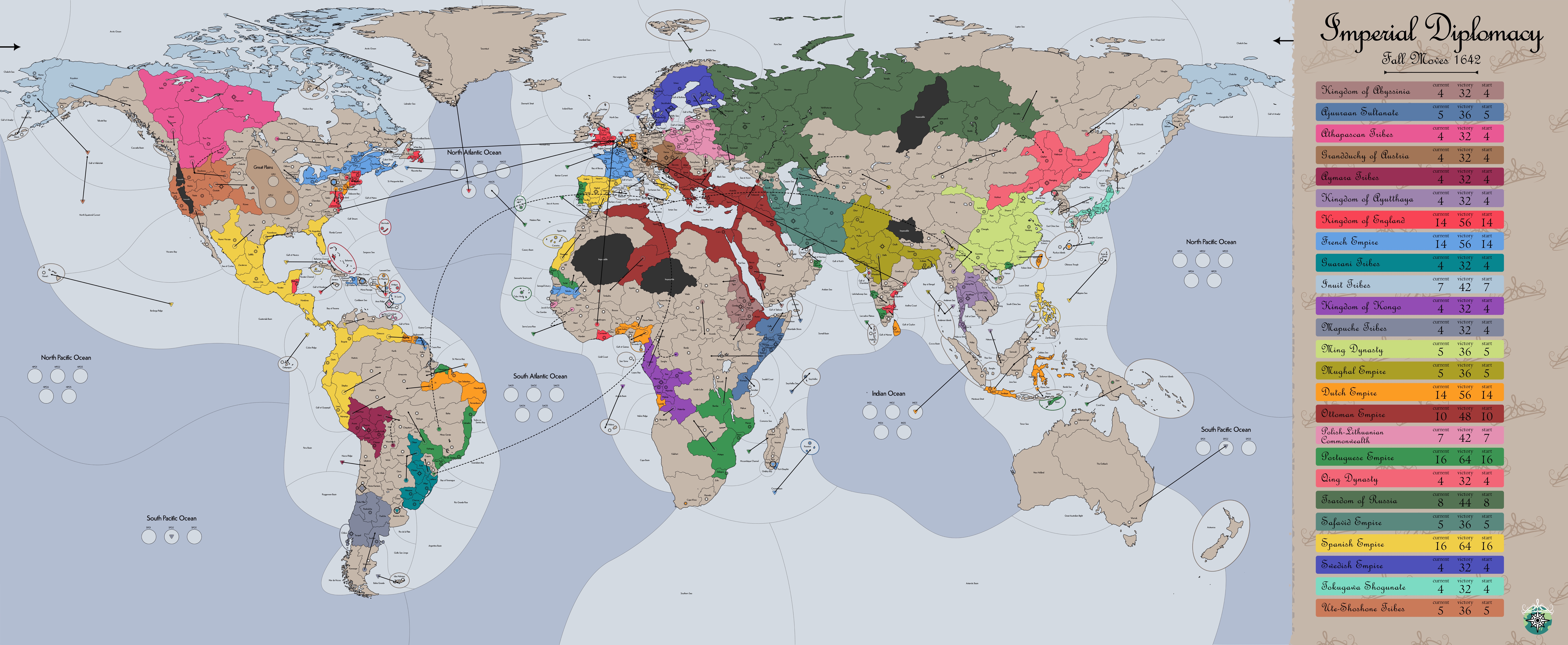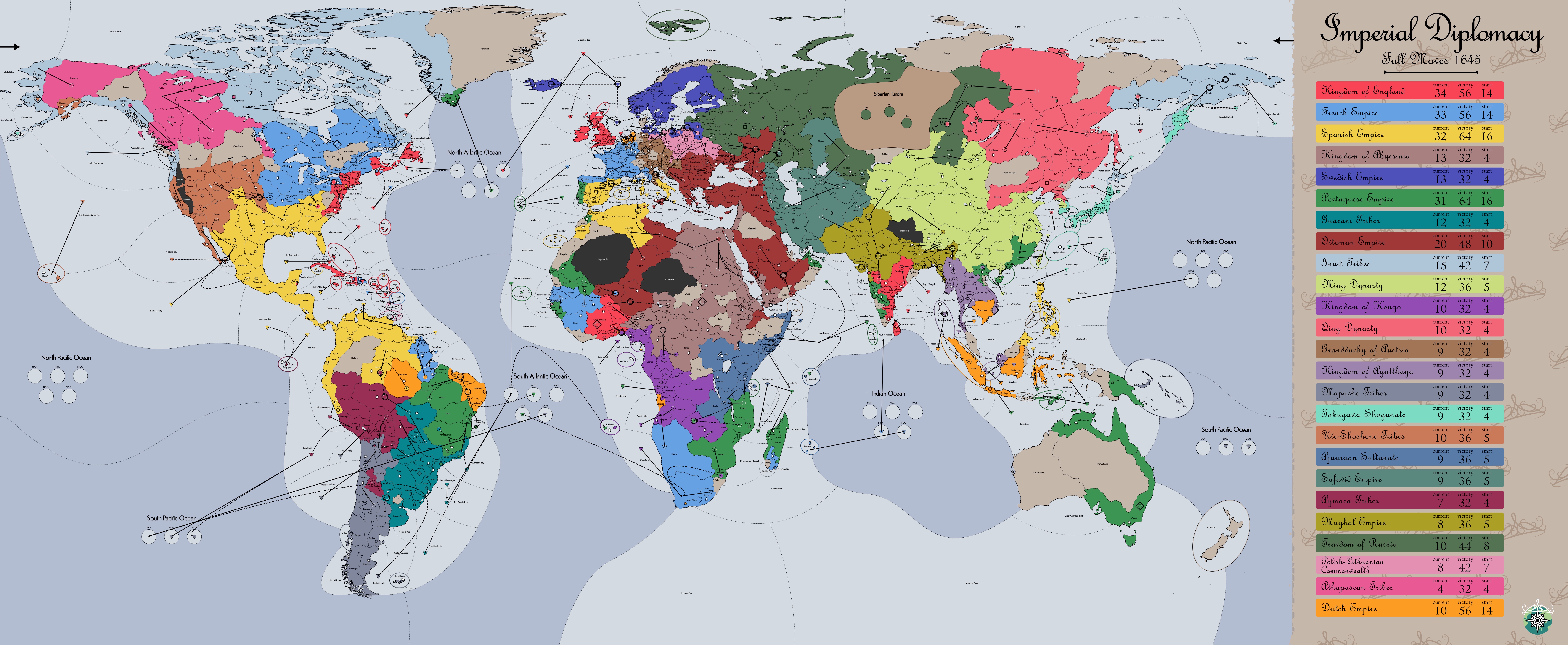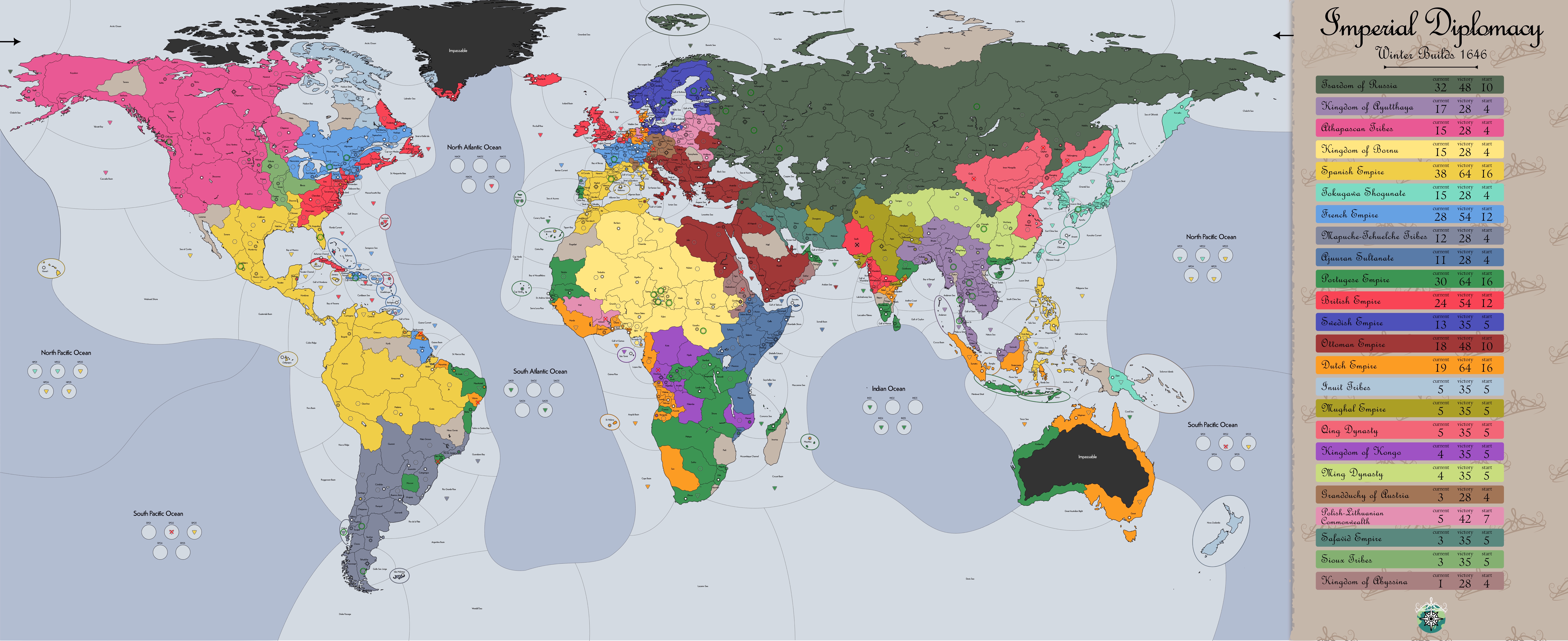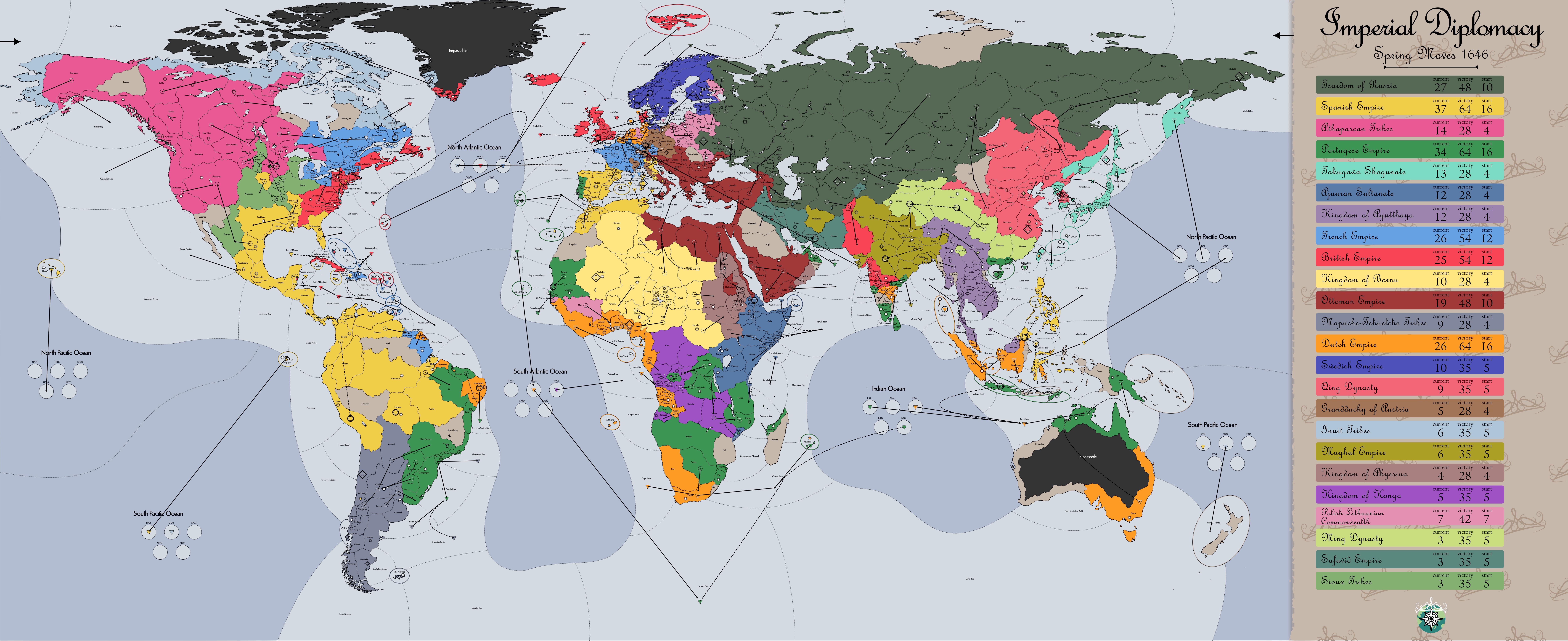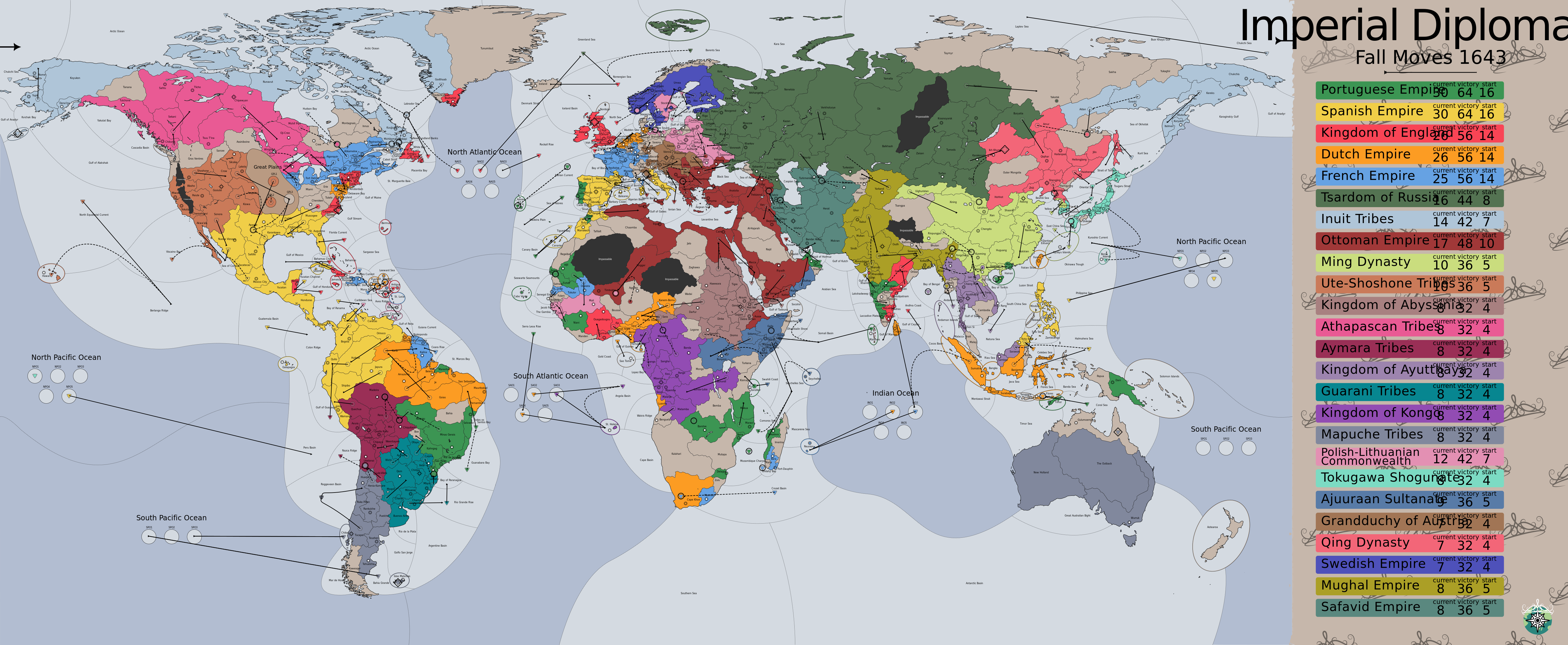 These maps are taken manually from each games' Discord server, and as such might be a turn or two out-of-date. If you notice any issues, incorrect maps, or missing maps, please contact Golden Kumquat on Discord.